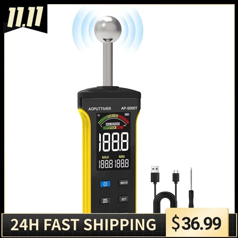 Non-contact wood hygrometer, mainly through the spherical humidity sensor for non-destructive testing of materials containing moisture. The maximum penetration depth is approximately 20mm-40mm and is suitable for measuring concrete, wood, floors, walls and other building materials